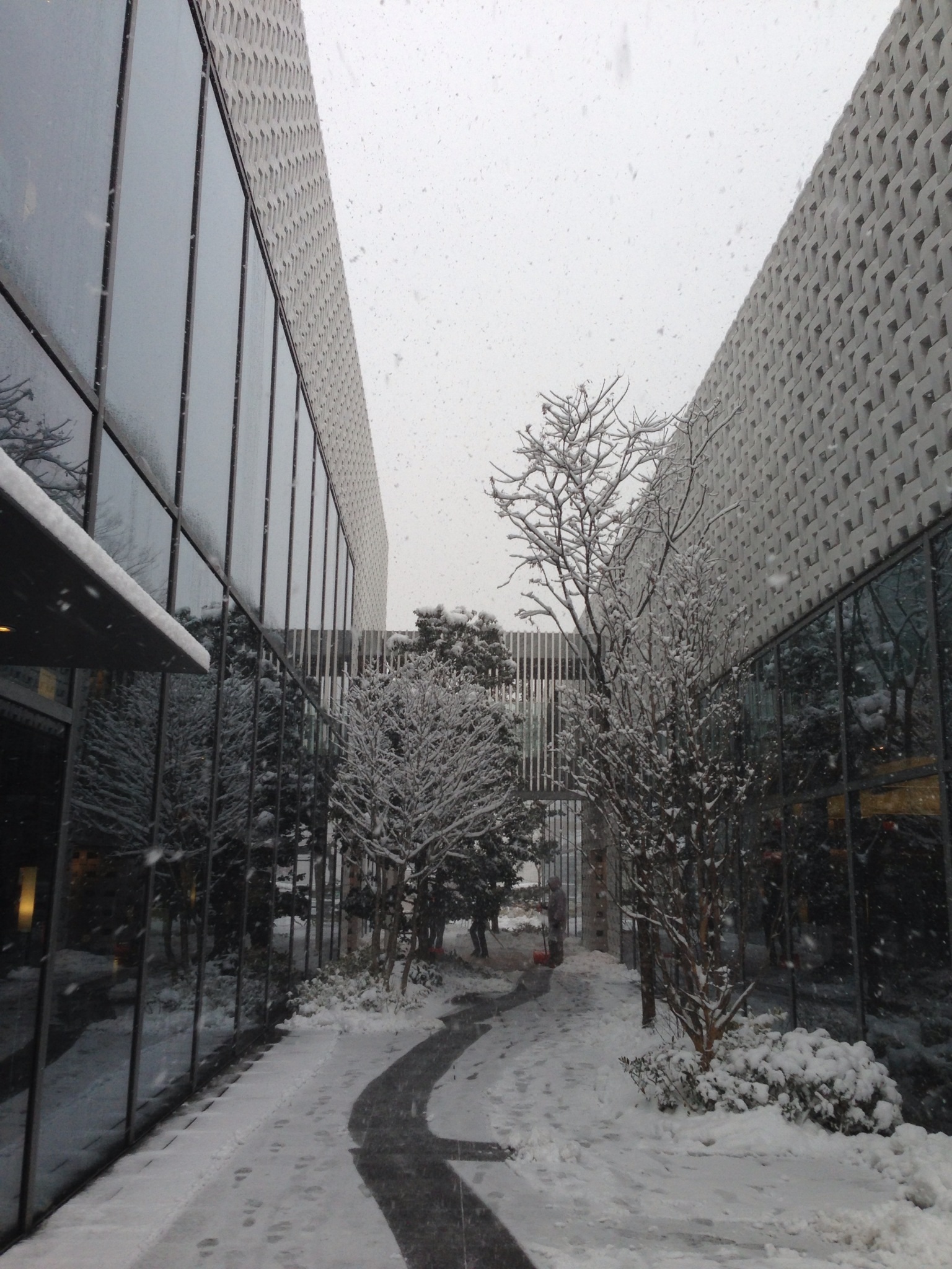 スタッフさんが雪かきに追われていました。