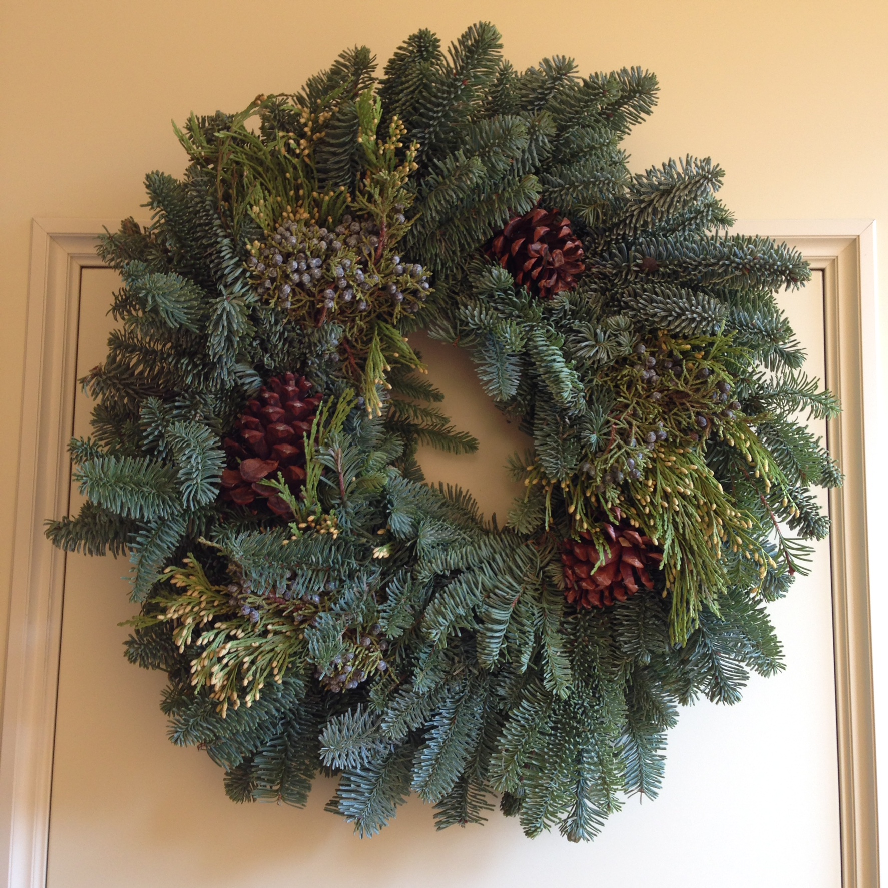 Put the Christmas Wreath on the door. Are you ready for Christmas? クリスマスリースを玄関ドアに掲げました。 今年も終わりに近づいた感じ。