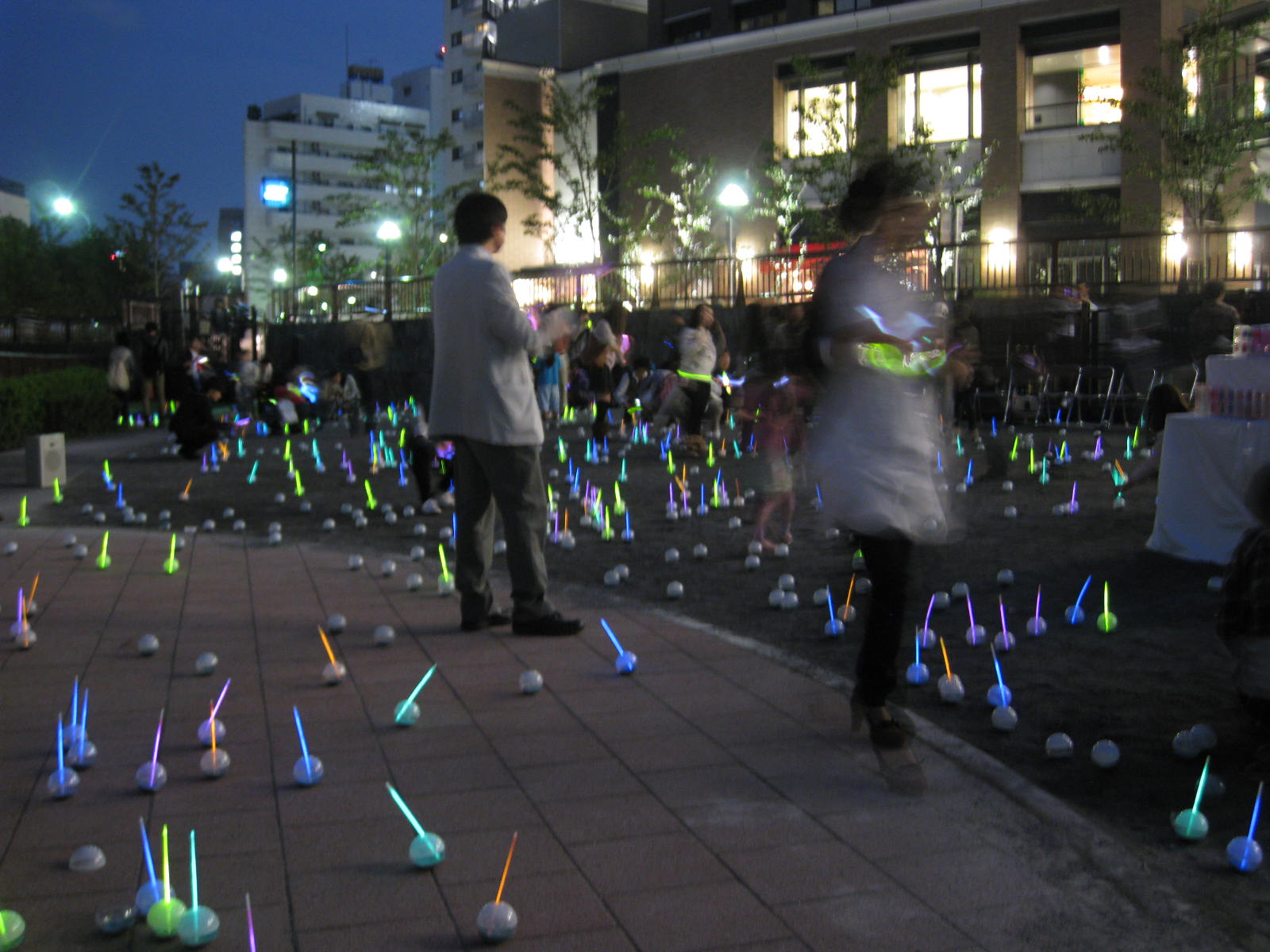 アトラスタワーが見下ろす広場では、目黒川キャンドルナイトの準備が始まりました。