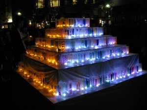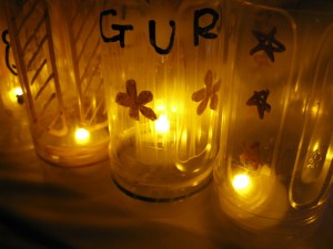 中央にはペットボトルで作られたキャンドルホルダーが並びます。